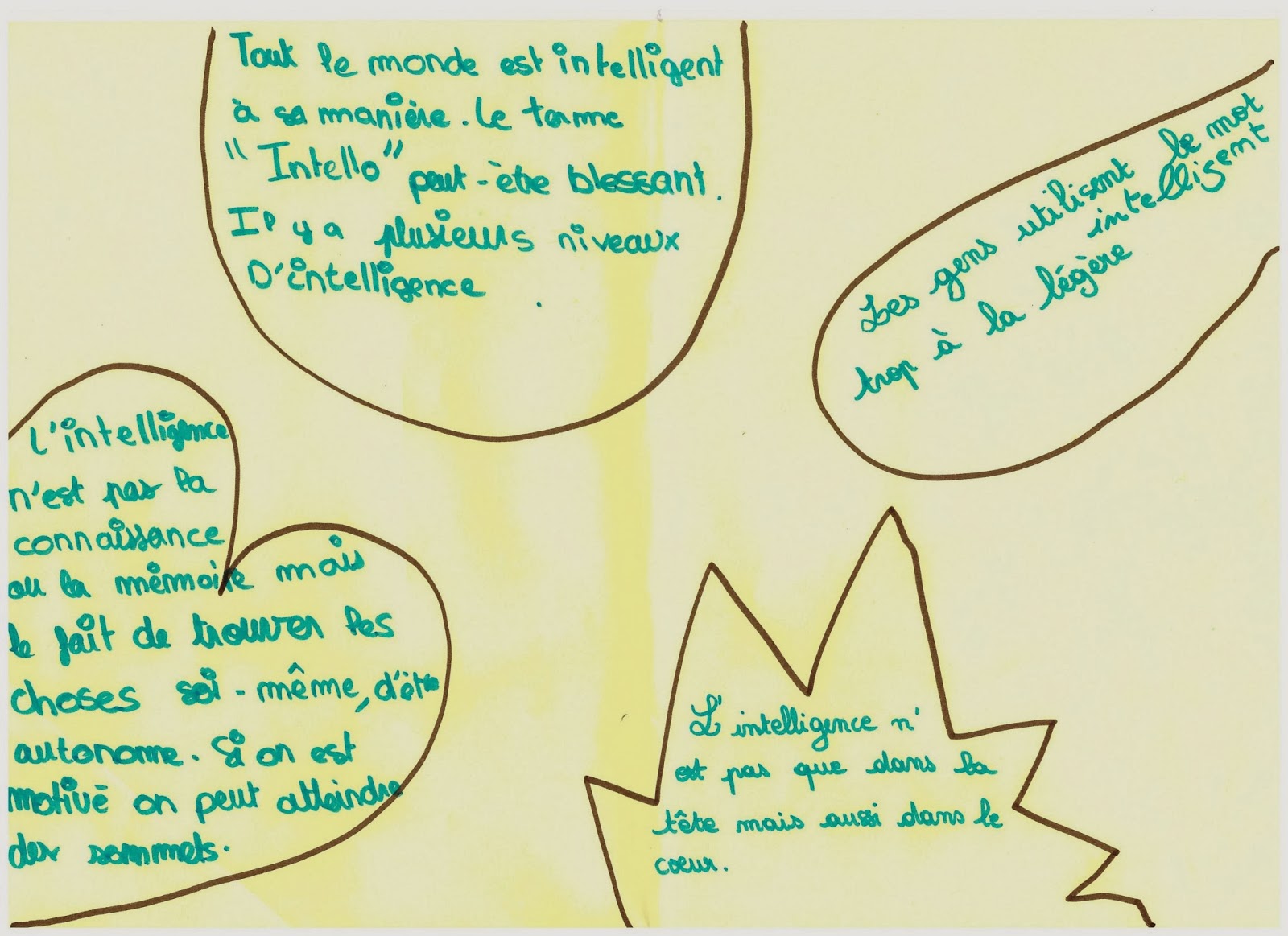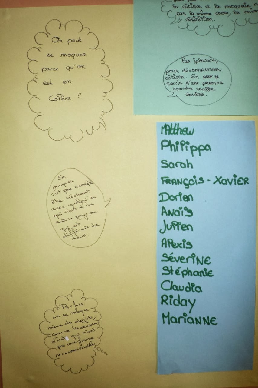 Je leur avais distribué à chacun un carton avec leur prénom afin que je puisse prendre des notes, et qu’ils puissent réagir en citant ce qu’avait dit un de leur camarade.